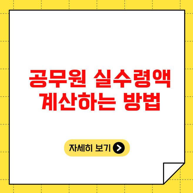 "공무원 월급은 얼마일까?", "실제로 받는 금액은?" 이런 궁금증은 공무원을 준비하거나 현직 공무원이라면 누구나 가질 수 있는 질문입니다. 공무원 실수령액은 단순 계산이 아닌 여러 요소를 고려해야 하는데요, 공무원 실수령액 계산 방법을 명확하고 쉽게 설명해 드리겠습니다. 실제 급여를 계산하고 관리하는 데 필요한 핵심 정보를 알려드립니다.