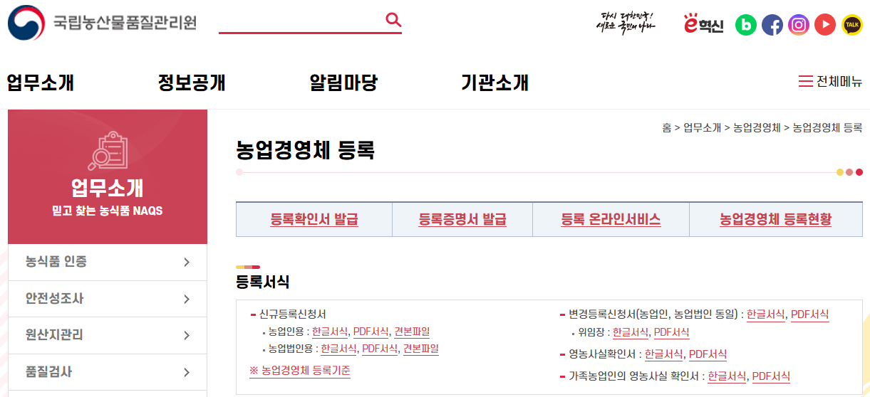 ⬇️농업경영체 등록 신청서 다운받기⬇️