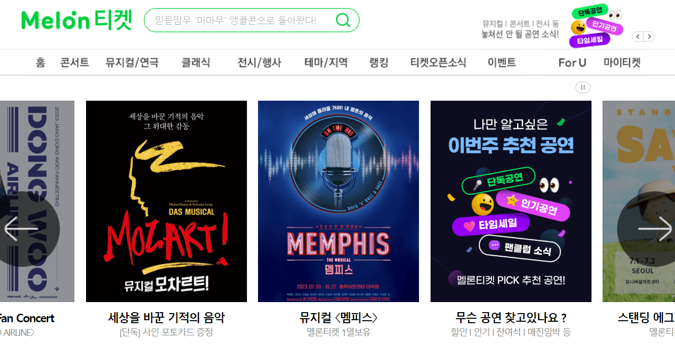 2. 멜론 티켓은 새로고침을 하지 않아도 됩니다.