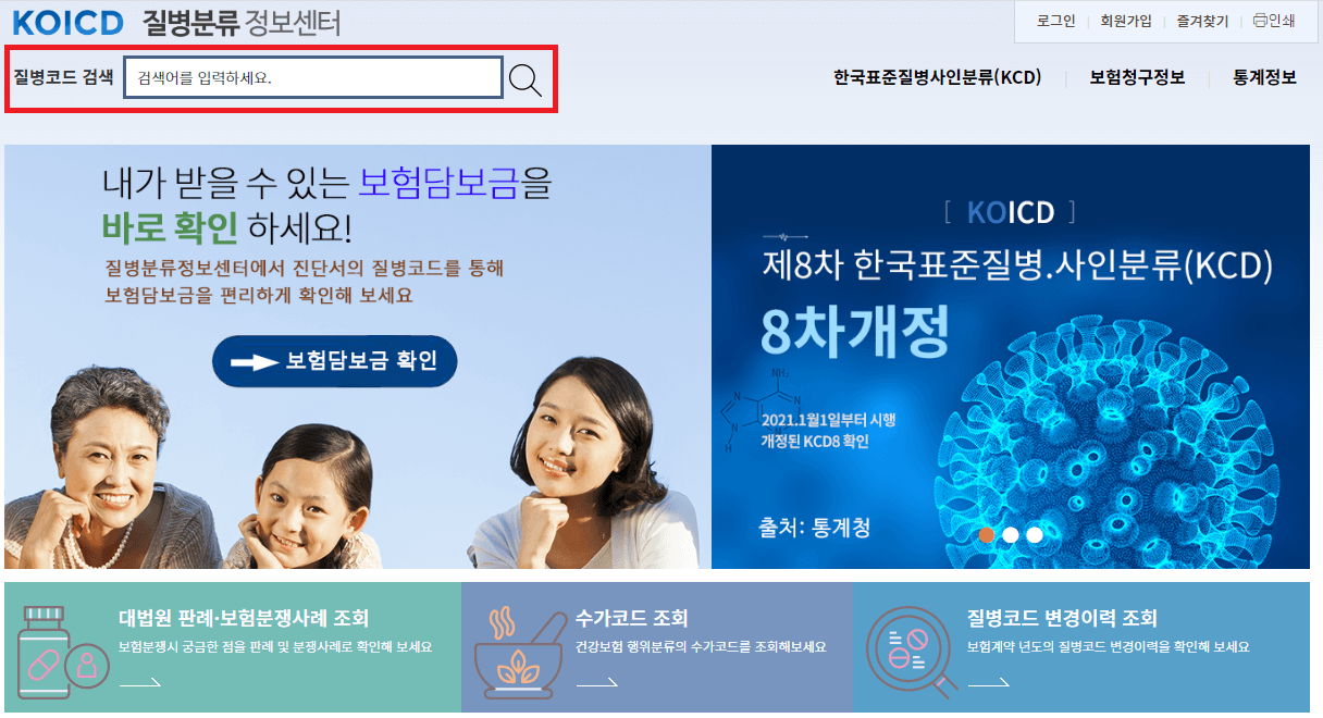 1. 질병분류정보센터 홈페이지에 접속합니다.