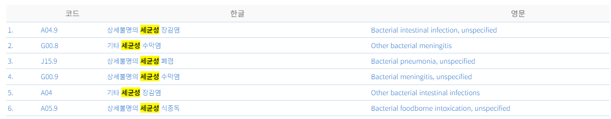 2. 질병 검색하기 (ex. 세균성 식중독)