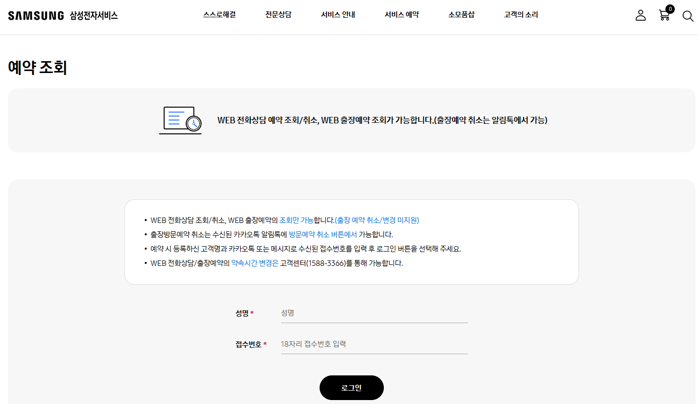 삼성 서비스센터 예약은 방문 출장 서비스만 가능합니다.
