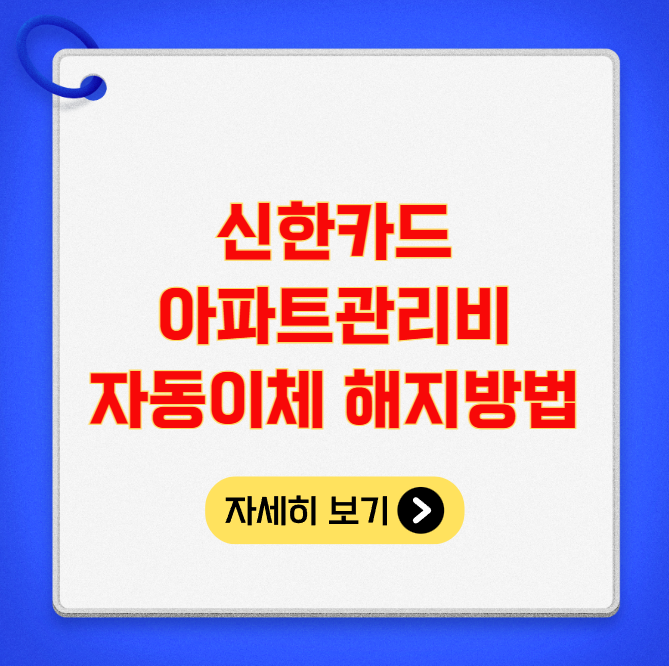 신한카드의 아파트 관리비 자동이체를 해지하는 방법을 안내드립니다. 웹사이트, 모바일 앱, 또는 고객센터를 통해 간편하게 해지할 수 있습니다.