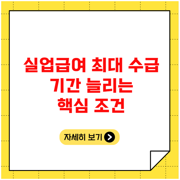 실업급여 받는 기간을 최대한 늘릴 수 있는 방법이 있다는 사실, 알고 계셨나요? 대부분이 기본 급여만 받고 끝나지만, 조건만 맞으면 추가로 몇 개월 더 받을 수 있습니다. 지금 바로 내 상황을 확인해보고 놓치고 있던 혜택을 챙기세요.