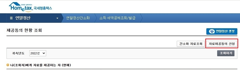 2. 장려금/연말정산 전자기부금 카테고리에서 연말정산간소화의 부양가족 자료제공 동의/조회를 선택합니다.