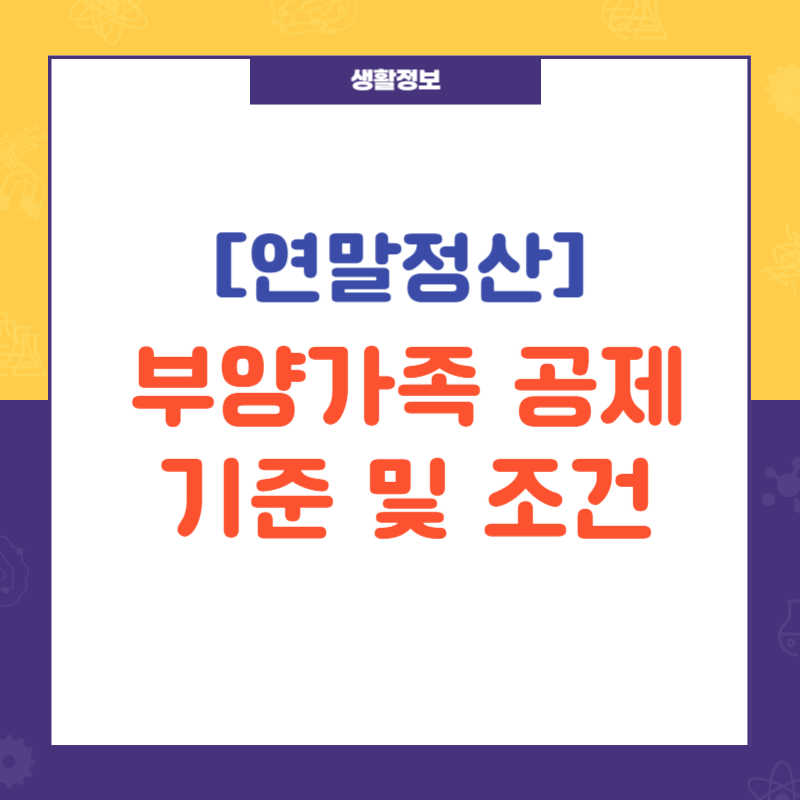 연말정산은 근로자가 한 해 동안 벌어들인 소득에 대해 세금을 계산하고 납부하는 절차입니다. 연말정산을 통해 세금을 줄일 수 있는 방법 중 하나는 부양가족 공제를 받는 것입니다.