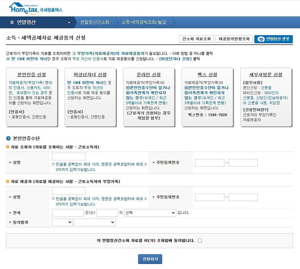 - 부양가족의 연간 소득이 100만원 이하이어야 합니다.