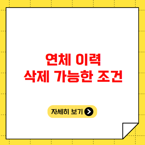 연체 이력은 금융상품 가입, 대출, 신용카드 발급에 큰 영향을 미치는 요소입니다. 단 한 번의 연체라도 기록이 남으면 금융생활 전반에 불이익이 발생할 수 있습니다. 하지만 일부 조건을 충족하면 연체 이력 삭제가 가능하며, 신용정보에서도 정상 상태로 전환될 수 있습니다.