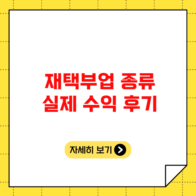 집에서 편안하게 돈을 벌 수 있는 재택부업에 대한 관심이 높아지고 있습니다. 저 역시 재택부업을 통해 부수입을 올리고, 삶의 질을 향상시킬 수 있었는데요. 지금부터 제가 경험한 다양한 재택부업 종류와 각 부업의 실제 수익그리고 성공적인 재택부업을 위한 팁을 자세히 공유해 드릴게요.