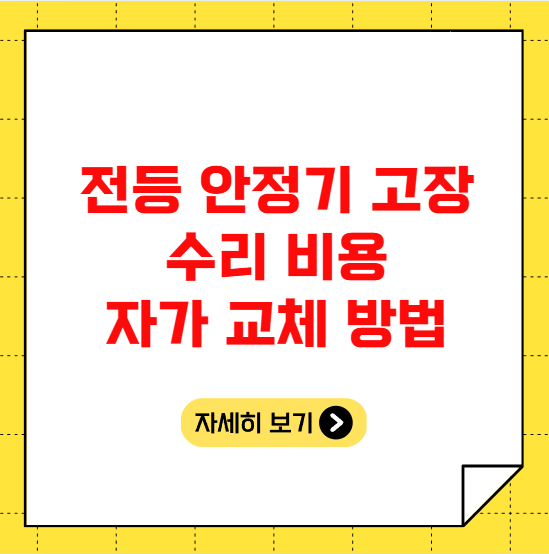 - 교체 비용: 전등 안정기 가격은 제품 종류, 브랜드에 따라 다르지만, 1~3만원 정도입니다. 자가 교체 시, 공임은 절약할 수 있습니다.