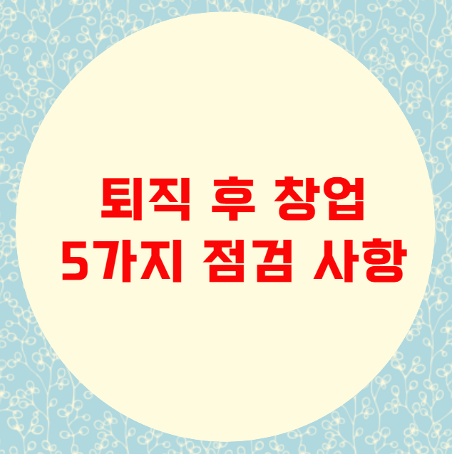 퇴직 후 창업을 고려하는 분들이 꼭 점검해야 할 5가지 사항을 정리해 보았습니다.
