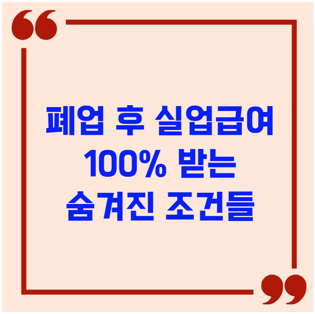 놓치면 최대 300만원 손해! 폐업 후에도 실업급여를 받을 수 있는데 70%가 몰라서 놓치고 있습니다. 신청 자격과 방법만 정확히 알면 5분 안에 신청 완료 가능합니다.