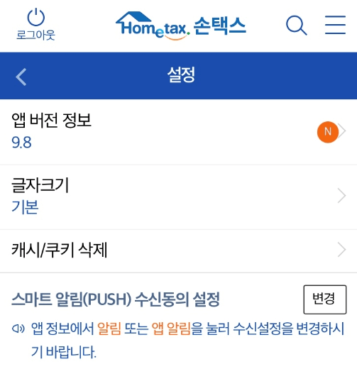 4. 설정으로 들어가 현금영수증 발급사실 알림(PUSH) 수신동의를 ON으로 바꿔 놓습니다.