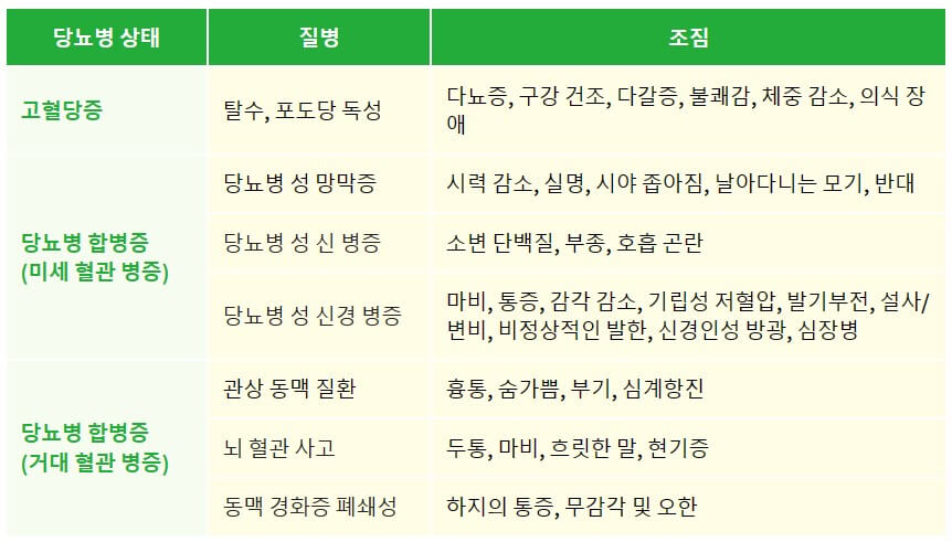 | 당뇨병 상태 | 질병 | 조짐 |