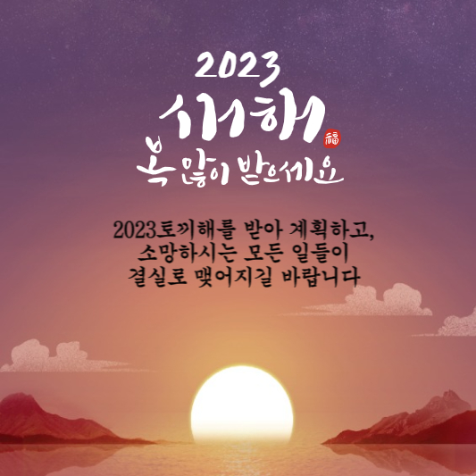 - 2023년 계묘년에는 이루고자 하는 모든 일들이 잘 풀리길 바랍니다. 항상 행복하시고 좋은 일만 가득하길 바라겠습니다.